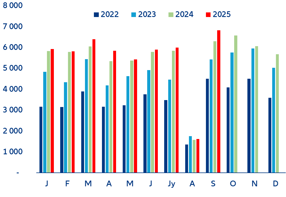 - Un minimum de 67 500 défaillances d’entreprises est désormais attendu en France en 2025, soit une hausse de +2 % par rapport à 2024, à l’issue d’un nombre record de cas en septembre.