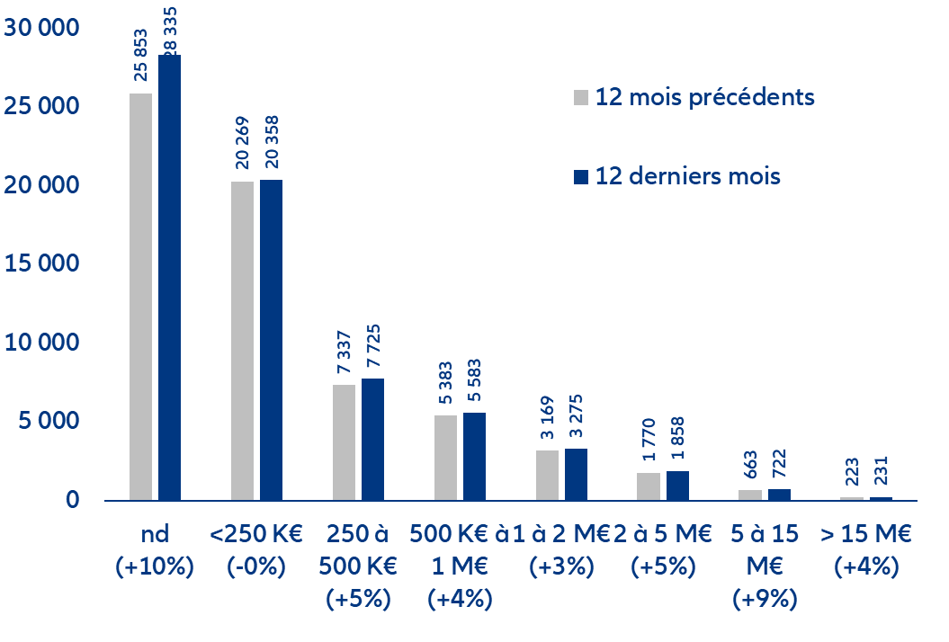 - Les grandes entreprises ne sont pas épargnées : au démarrage concentrée sur les plus petites entités (en termes de chiffre d’affaires), la hausse des défaillances s’est diffusée à toutes les tailles d’entreprises.